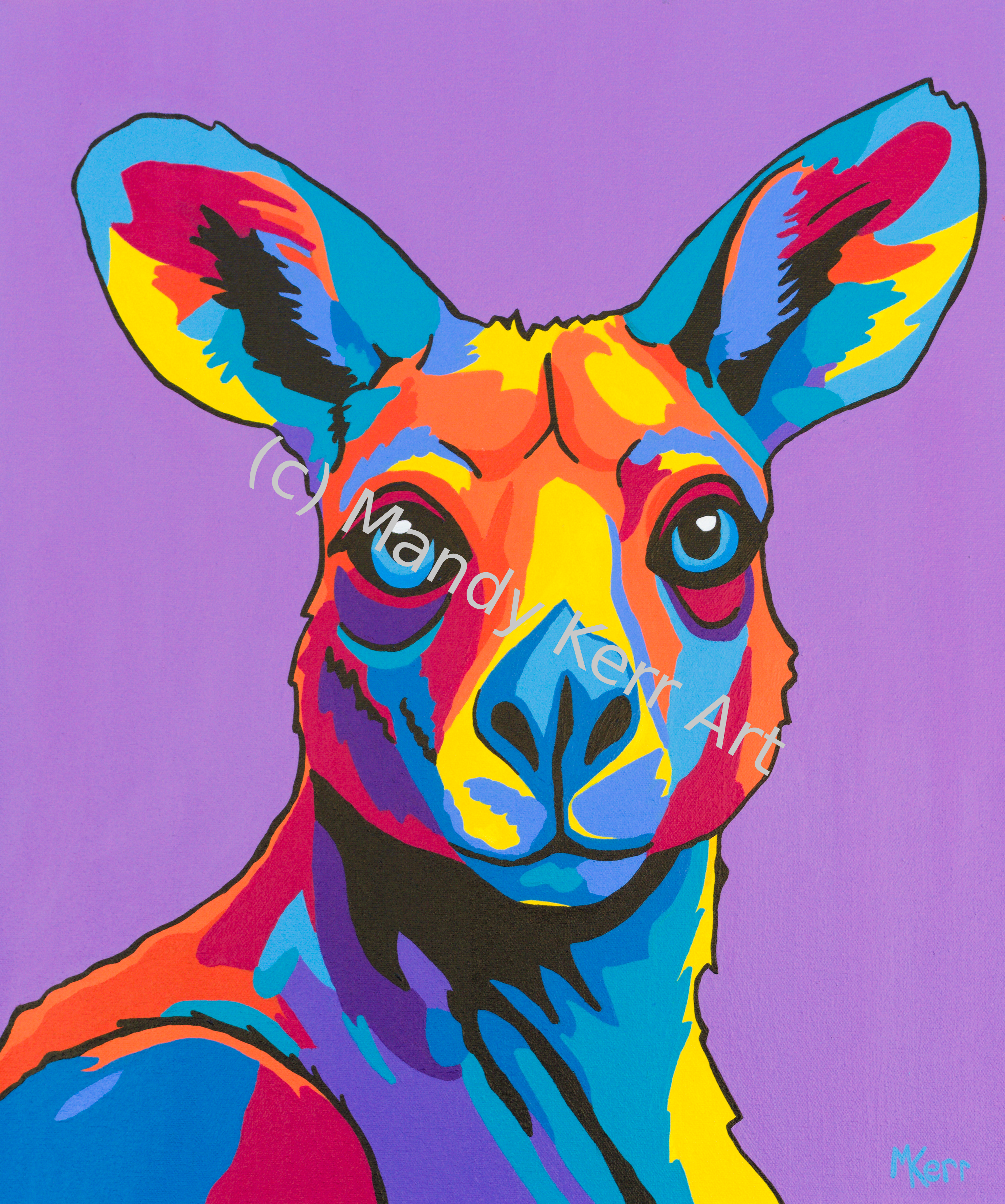 Roo is an acrylic painting with a 1.5 inch deep gallery wrapped canvas. This painting has 2 coats of varnish to protect the paint and it also has a hanging wire for easy hanging.