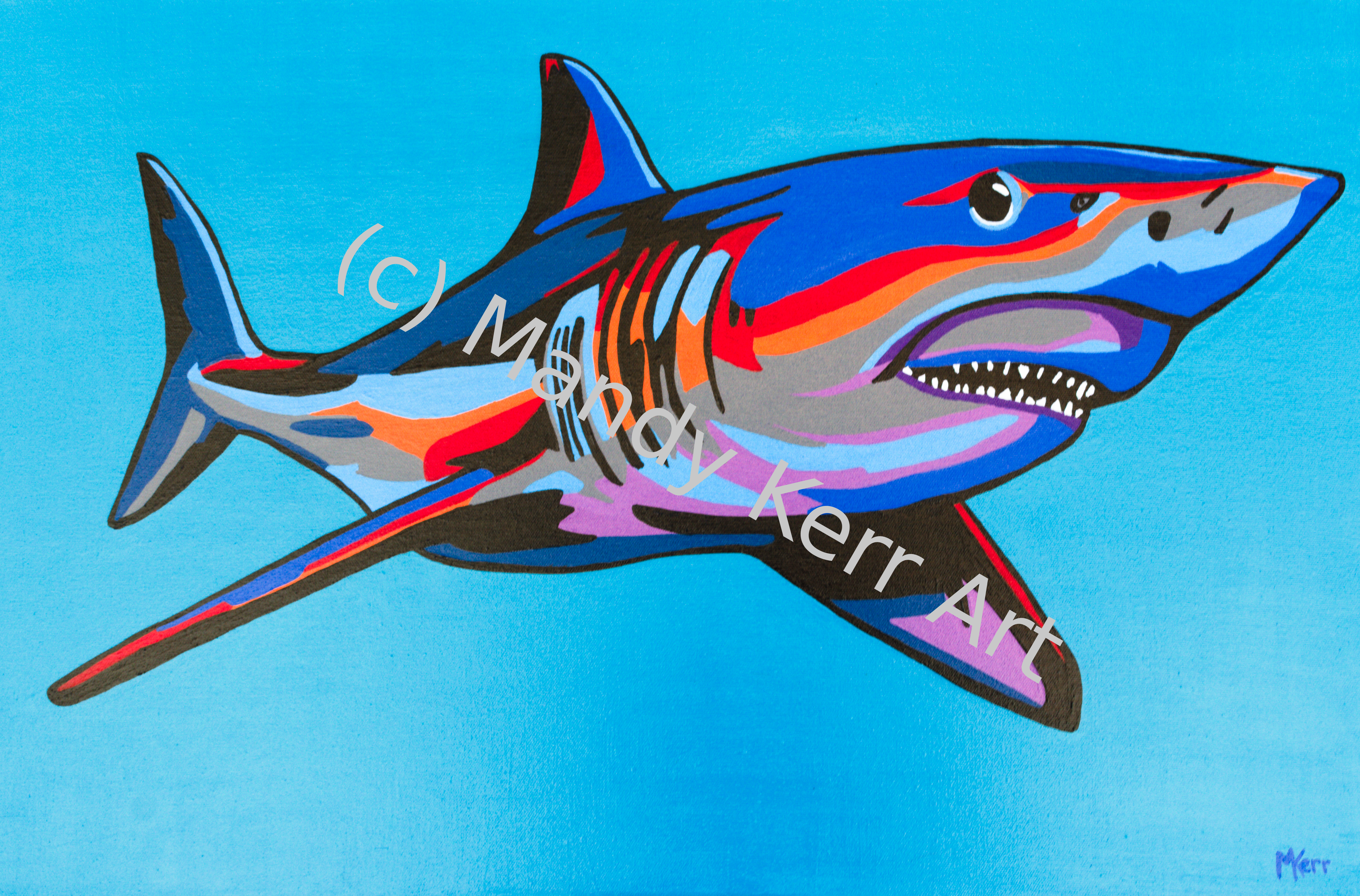 Usually, I like to paint cuddly animals but with my water paintings, there aren't many fuzzy animals to paint...lol. I thought it would be neat to paint a Great White shark!